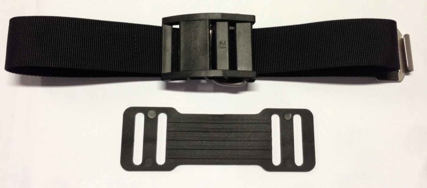 Der Flaschenspanngurt mit Haken und Schnalle ist für 7 bis 15 Liter Pressluftflaschen geeignet.