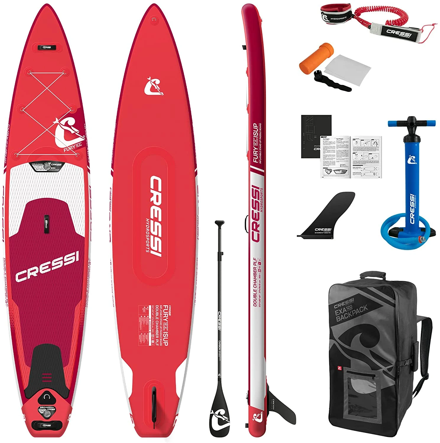 Schnellstes und leistungsstärkstes SUP Fury ist das ISUP von Cressi Hydrosports, das sich dem Touring widmet. Die hydrodynamische und langgestreckte Form, gepaart mit dem sehr leichten Carbonpaddel, das mitgeliefert wird, machen dieses Set zum besten für ausgedehnte Paddleboarding-Sessions. Der gekrümmte Bug (Nasenwippe) verbessert seinen Auftrieb im Meer und verhindert, dass die Spitze in den Wellentälern eintaucht, und schafft gleichzeitig hydrodynamischen Widerstand. Die Cressi Doppelkammer-PLF-Technologie bewahrt trotz der Länge des Brettes von über 12 Fuß eine hohe strukturelle Steifigkeit beim Paddeln, und die doppelte Luftkammer garantiert eine größere Sicherheit im Falle versehentlicher Pannen. Die große 9 Zoll-Drift, die weit vom Schwerpunkt entfernt positioniert ist, trägt dazu bei, auch bei niedrigen Geschwindigkeiten eine lineare Bewegungsbahn beizubehalten, was bei großen Entfernungen einen Vorteil darstellt. Technologie: Cressi Double Chamber PLF Doppelluftkammerkern aus vorlaminiertem Verbundwerkstoff ohne Verkleben für ein Board mit außergewöhnlicher Leistung in Bezug auf Steifigkeit/Gewichtsverhältnis und Stabilität. Die zentrale Kammer mit dediziertem Ventil gewährleistet eine verbesserte Leistung und größere Sicherheit bei der Verwendung im Falle von Luftlecks, die durch versehentliche Punktionen verursacht werden.